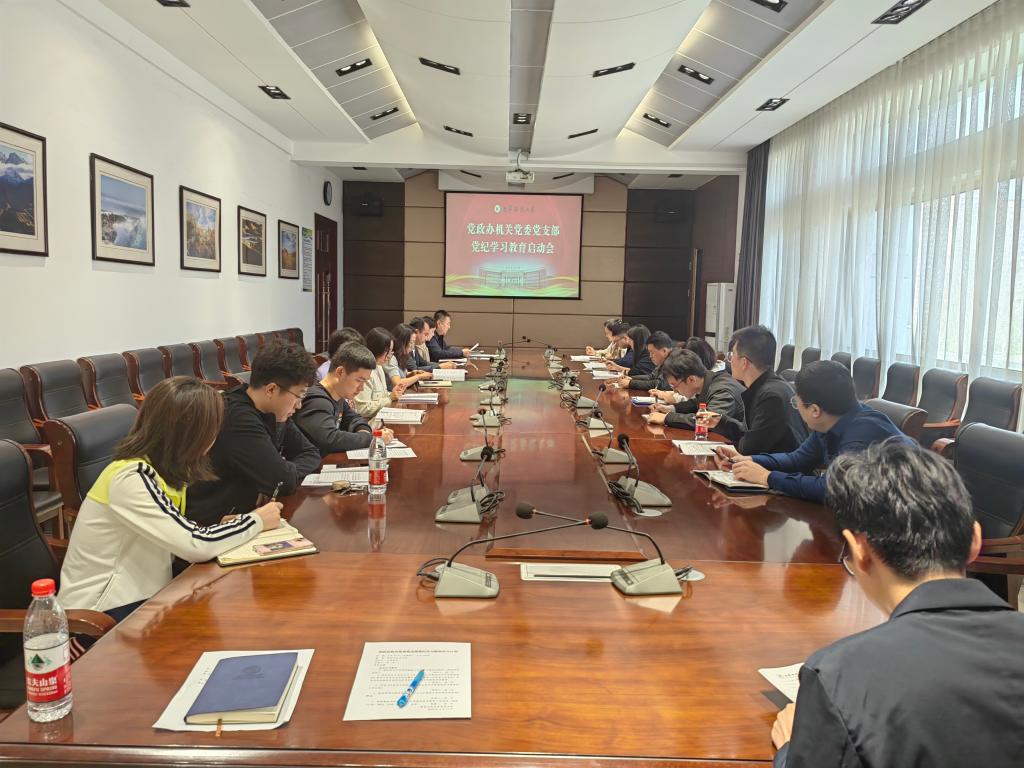 会议集中部署了《党政办机关党委党支部党纪学习教育工作安排》,明确了支部党纪学习教育的主题是以“八学”模式开展“八个一”活动,即“以上率下带头学,讲好一堂主题党课”“交流研讨共同学,召开一场学习研讨”“循迹悟源现场学,开展一次主题党日”“承诺践诺体验学,组织一次政治生日”“观看视频深悟学,分享一系列专题片”“个人自主加压学,撰写一篇主题征文”“原汁原味背诵学,开展一次知识竞赛”“紧跟实际常态学,推动一次全覆盖学习”。会上,编制下发了《党政办机关党委党支部党纪学习教育学习材料汇编》,将上级相关会议和文件精神、《中国共产党纪律处分条例》系列解读、警示教育案例等材料编制成册,作为党员自主学习的辅导读物。
