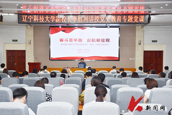 6月9日,荣耀体育app最新版下载党委常委、副校长李胜利以《奋斗百年路 启航新征程》为题讲党史教育专题党课。发展规划处、科技处(高新技术研究院)、研究生院(研究生工作部)、国际交流合作处(国际教育学院)、资产经营公司、机械学院、外语学院等单位的党员干部参加学习。