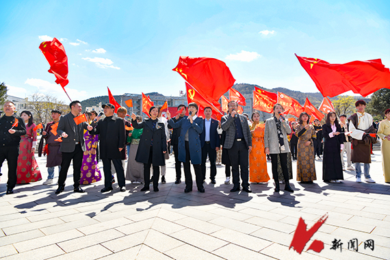 4月13日,荣耀体育app最新版下载师生在学校博雅广场用快闪方式高唱《歌唱祖国》《国家》《走过百年的你》等红色经典歌曲,向中国共产党成立100周年献礼。用激情的演唱落实“辽宁省教育系统献礼建党百年体音美展播活动方案”。校党委常委、副校长孙晓华,校党委常委、宣传部部长张佳亮来到活动现场,与师生一同挥舞红旗,放声歌唱。