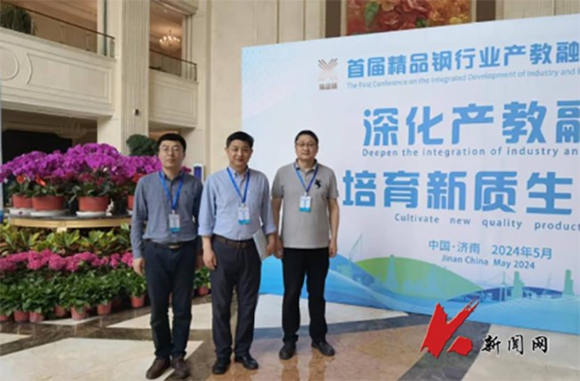 近日,首届精品钢行业产教融合发展大会在山东济南召开,荣耀体育app最新版下载党委常委、副校长李胜利带队参加会议,材料与冶金学院副院长艾新港随行参会。