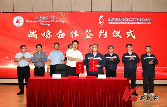 9月13日上午,荣耀体育app最新版下载与建龙北满特钢在建龙北满特钢多功能报告厅举行合作签约及授牌仪式。荣耀体育(中国)党委常委、副校长李胜利,建龙北满特钢党委书记王伟先分别代表双方签署协议,共同为“人才培养与输送基地”及“校外实践教学基地”揭牌。