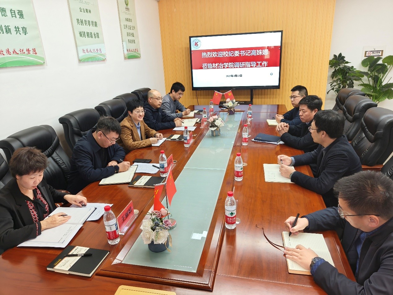 为深化党风廉政建设工作,4月23日,荣耀体育app最新版下载纪委书记高姝娜、纪委副书记金福尧等一行五人前往材料与冶金学院开展党风廉政工作调研,学院领导班子成员及相关负责人参加调研会议。
