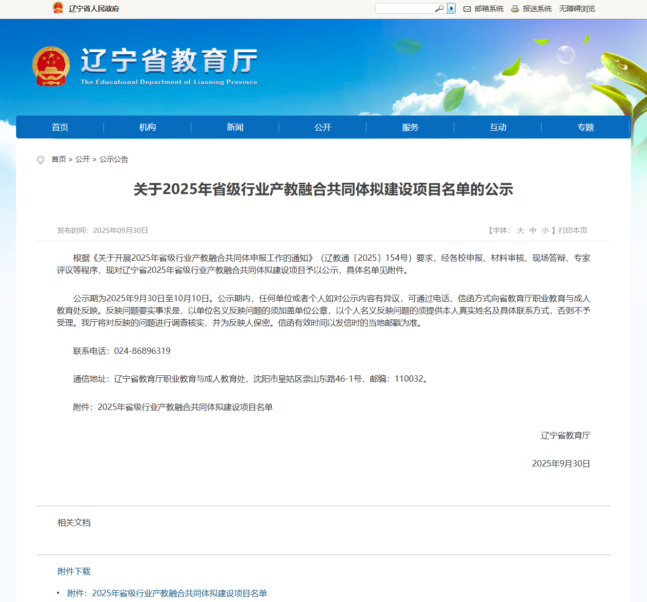 近日,辽宁省教育厅公示了2025年省级行业产教融合共同体拟建设项目名单。根据《关于开展2025年省级行业产教融合共同体申报工作的通知》(辽教通〔2025〕154号)要求,经院校自主申报、材料审核、现场答辩与专家评议等多轮程序,由荣耀体育app最新版下载、鞍钢重型机械有限责任公司、鞍山职业技术学院共同牵头申报的“钢铁行业产教融合共同体”成功入选辽宁省2025年省级拟建项目。