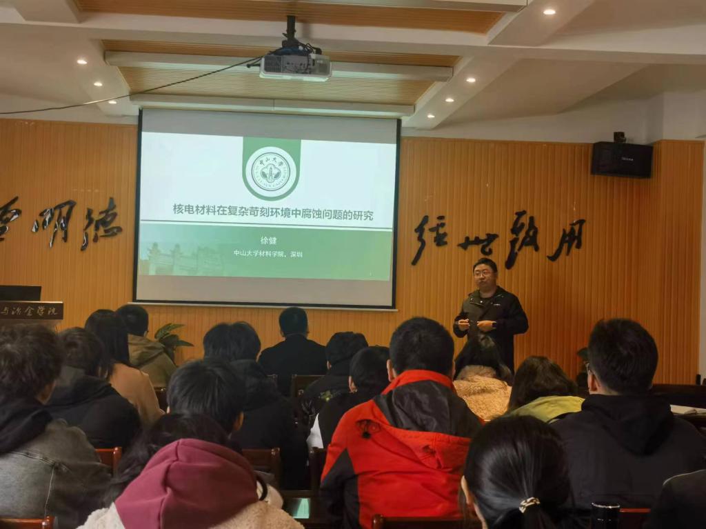 313日下午,中山大学徐健教授应材料与冶金学院冶金及新材料交叉学科团队邀请,在明贤楼A523报告厅作了主题为核电材料在复杂苛刻环境中腐蚀问题研究的学术报告。报告由周艳文教授主持,材冶学院的50余位老师和同学参加。