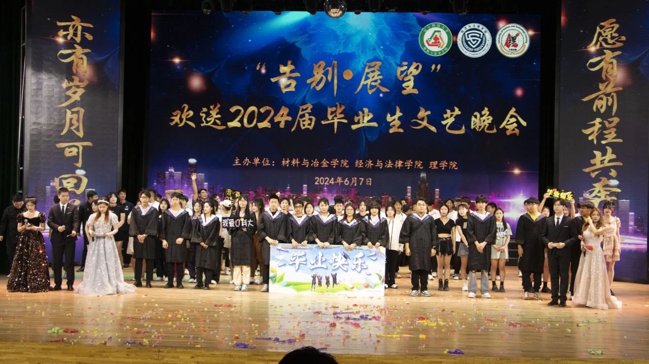 回首岁月,奔赴前程,6月7日晚,材冶学院联合经法学院、理学院于学校礼堂联合举办“告别·展望”欢送2024届毕业生文艺晚会。材冶学院、经法学院和理学院近900名师生观看了本次演出。
