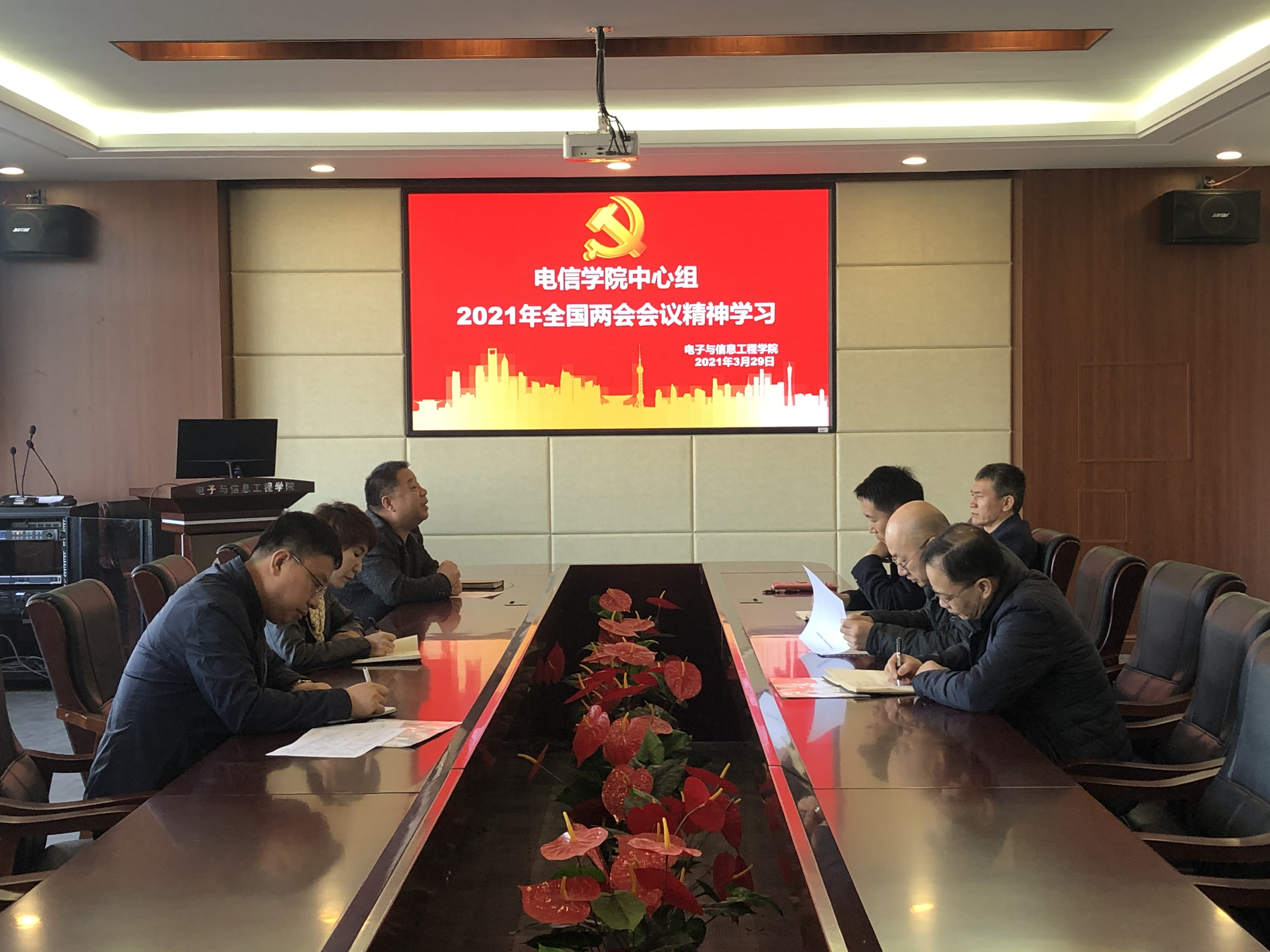 3月29日,电信学院中心组开展2021年全国两会会议精神学习。学院党委书记孙红星带领全体中心组成员传达学习《政府工作报告》,学院院长杨永辉对《政府工作报告》进行了深入的解读。