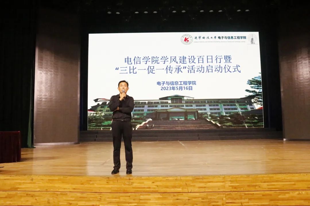 为深入学习贯彻习近平新时代中国特色社会主义思想,落实《荣耀体育app最新版下载进一步加强内涵建设 服务辽宁全面振兴新突破三年行动方案》要求,加强学风建设和文化建设,营造良好的育人环境,5月16日,电信学院于校礼堂举行学风建设百日行暨“三比一促一传承”活动启动仪式,此次活动由电信学院党委书记王会立主持,电信学院21、22级全体学生参加。