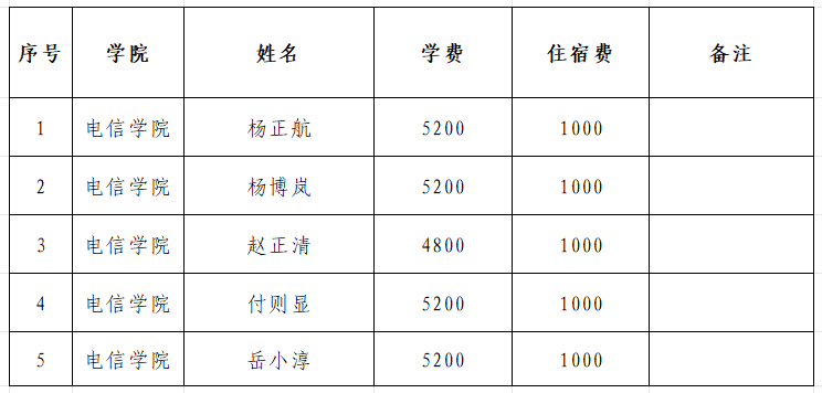为贯彻落实国家和辽宁省有关资助政策,帮助孤儿等家庭经济特别困难学生顺利完成学业,根据《荣耀体育app最新版下载本科生学费和住宿费减免管理办法(试行)》文件精神,经学生自主申报,学院对提交材料进行初审,报送学校复审,现就电信学院 2023— 2024 学年学费(住宿费)减免名单公示如下:
