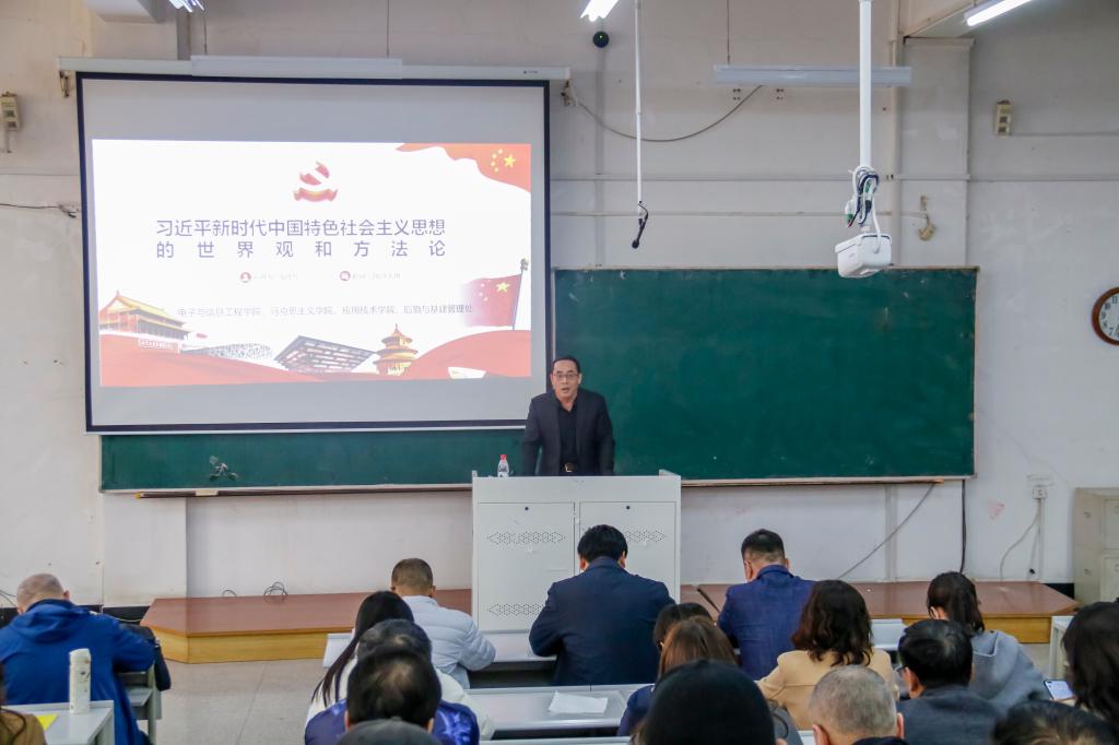 为深入学习贯彻党的二十大精神,根据学校党委安排和部署,3月28日,电子与信息工程学院、马克思主义学院、应用技术学院和后勤与基建管理处四个单位于博学楼C202联合组织召开学习贯彻党的二十大精神宣讲报告会,特别邀请了学校党委常委、宣传部部长张佳亮作专题宣讲报告,电子与信息工程学院党委书记王会立主持会议,四个单位350余名师生参加会议。