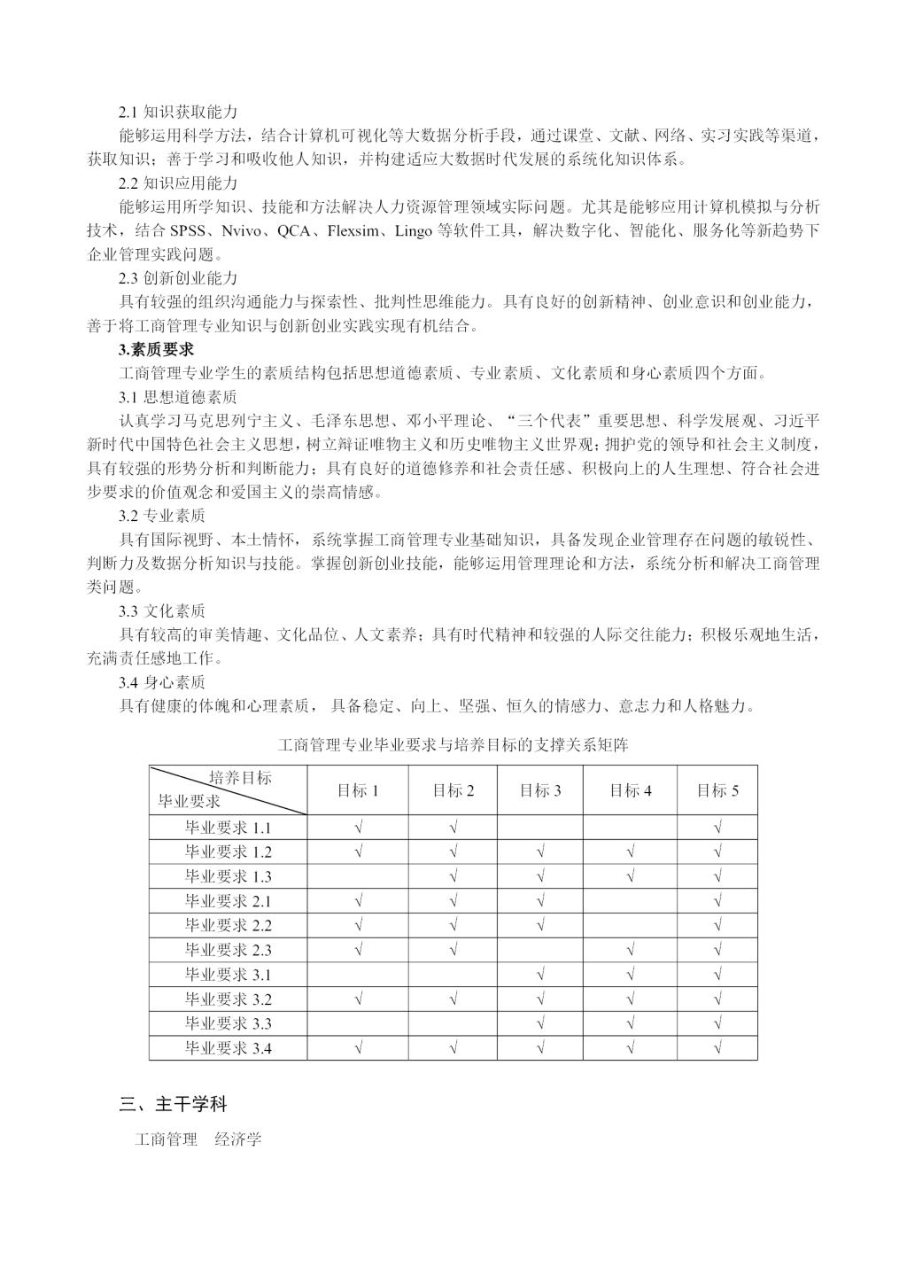 工商管理专业培养方案