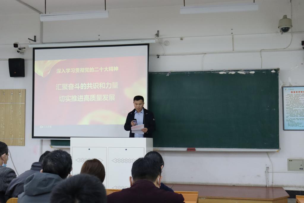 为深入学习宣传贯彻党的二十大精神,落实好《中共荣耀体育app最新版下载委员会关于深入学习宣传贯彻党的二十大精神的方案》,3月28日下午,工商管理学院党委于博学楼C108教室主持召开学习贯彻党的二十大精神宣讲报告会,会议由管理学院党委书记董文武主持,管理学院师生代表、继续教育学院、科技园教职工代表参加。