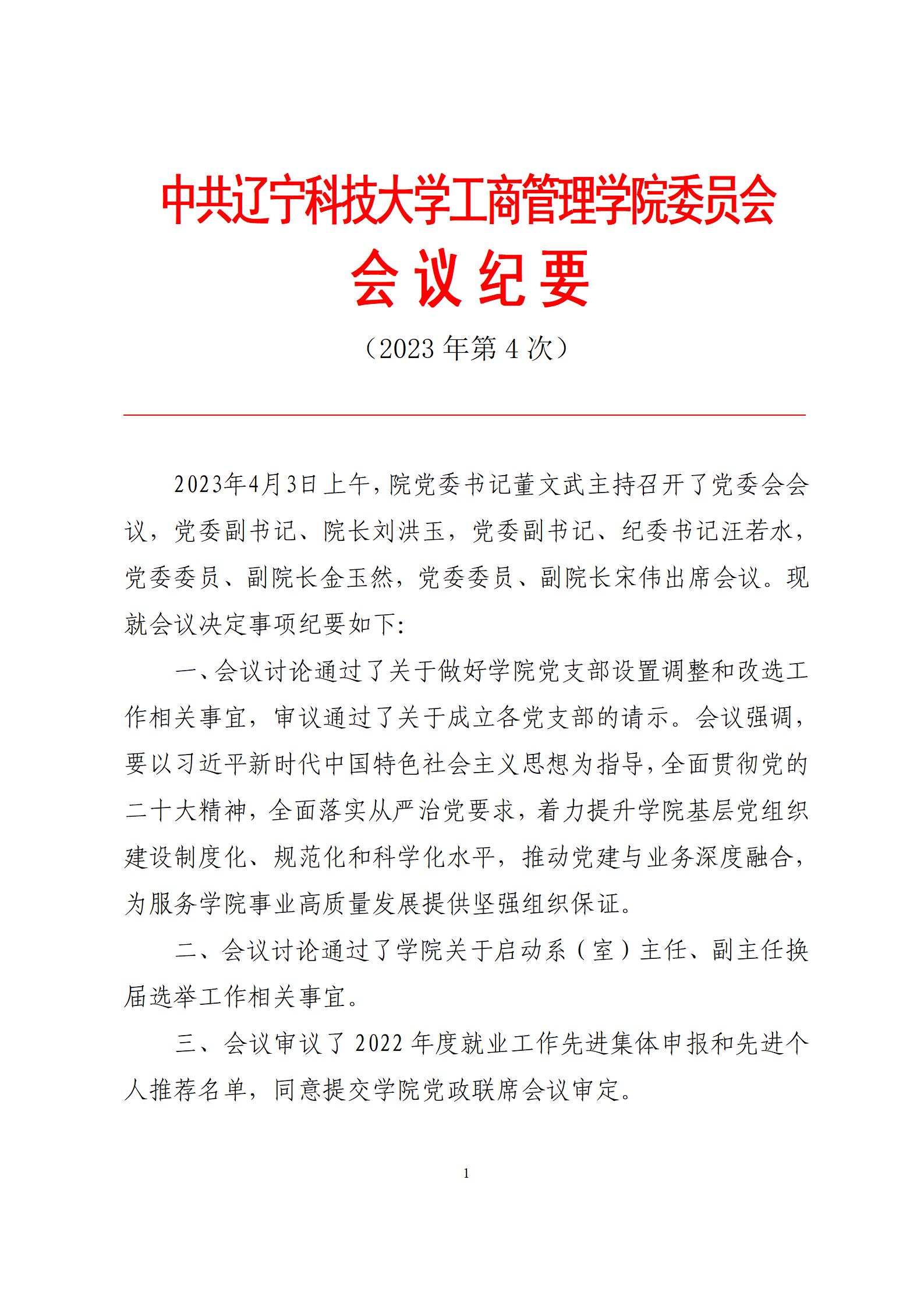 中共荣耀体育app最新版下载工商管理学院委员会会议纪要(2023年第4次)