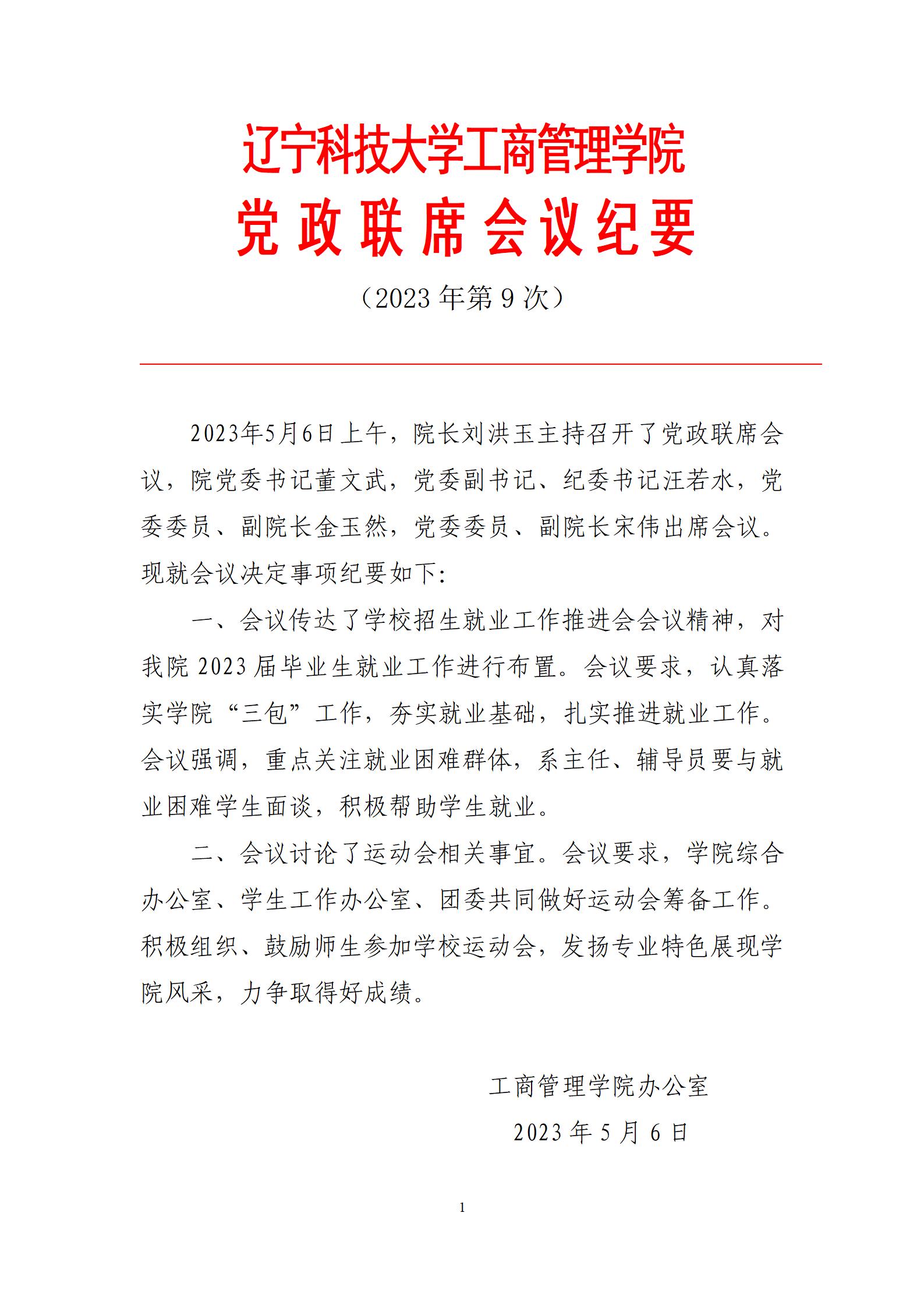 荣耀体育app最新版下载工商管理学院党政联席会议纪要(2023年第9次)