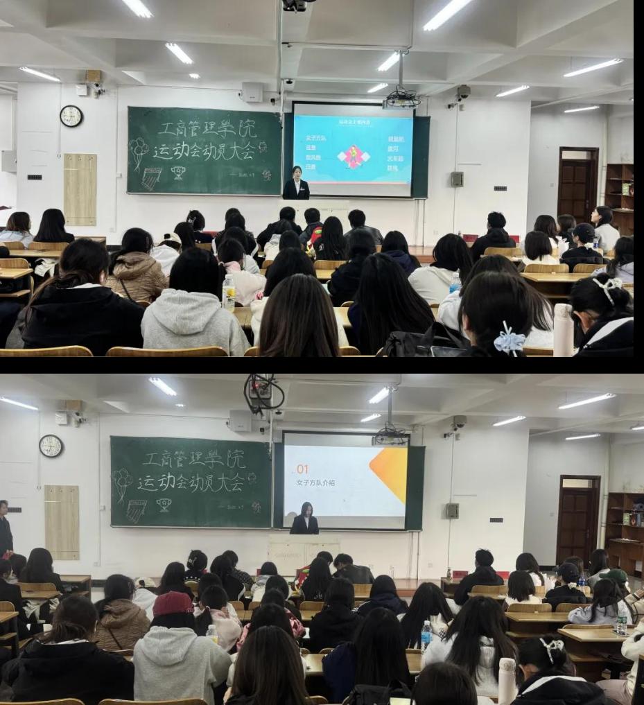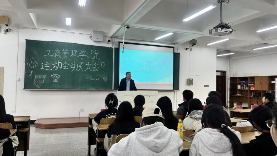 为激发学生参与热情,营造积极向上的体育氛围,4 月 9 日下午,荣耀体育app最新版下载工商管 理学院在明德楼 D308 召开校运会动员大会。学院党委副书记汪若水、2024 级辅导员王晨宇 及学生代表出席会议,共同为即将到来的校运会加油鼓劲,倡导以拼搏精神书写青春篇章。