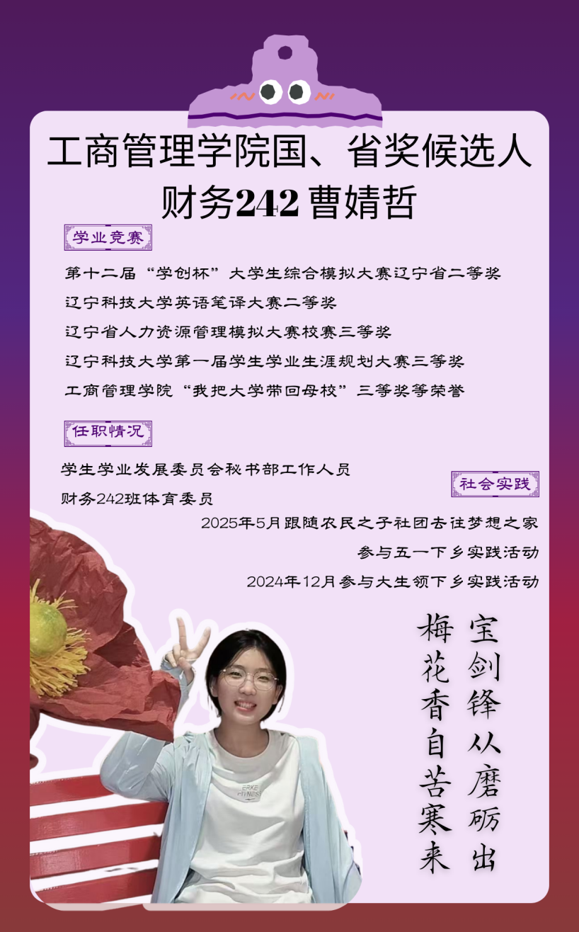 答辩会上,20位候选人依次上台,通过PPT展示与现场陈述,全面呈现了他们在学业成绩、学科竞赛、社会实践等多方面的优异表现。有人稳居专业前列,分享“课堂专注、课后复盘”的有效学习方法;有人结合“三下乡”实践经历,讲述如何将专业知识运用于乡村振兴的实际行动;还有人作为学生组织负责人,回顾统筹校园活动过程中的责任担当与团队成长。评委认真聆听、精准提问,围绕学业规划、实践细节等深入交流,并严格依据评审标准进行记录与打分。