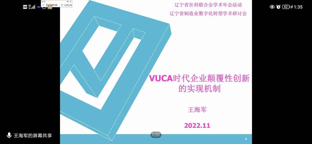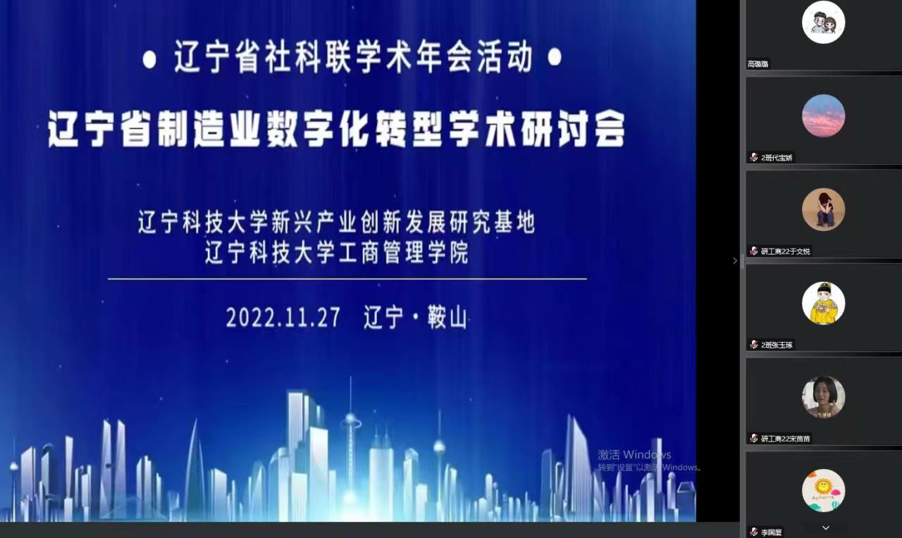 11月27日,工商管理学院通过腾讯会议举办“辽宁省制造业数字化转型”学术研讨会。此次研讨会依托荣耀体育app最新版下载新兴产业创新发展研究基地,聚焦数字化转型,深入探讨我省制造业转型发展的新机遇和新路径。哈尔滨工程大学郭韬教授、沈阳工业大学王海军教授以及荣耀体育app最新版下载李天柱教授进行了学术报告。沈阳工业大学、辽宁工业大学以及我校的相关老师、研究生参加了此次研讨会。