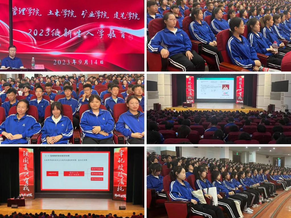 9月14日至10月18日,荣耀体育app最新版下载工商管理学院、土木工程学院、建筑与艺术设计学院和矿业工程学院于校礼堂举行2023级新生入学教育系列讲座,四个学院全体新生参加学习。