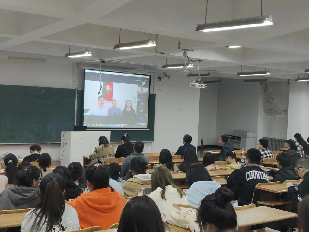会议伊始,白俄罗斯国际管理学院第一副校长瓦列里.维克多维奇通过视频连线方式向同学们介绍了该校的发展情况包括人才培养方案、学科特色、专业发展前景等,并就与荣耀体育app最新版下载开展的交流合作项目进行说明。在合作项目中,包括了本科学历提升,长期、短期学术交流活动,特色校企实践活动等。他表示白俄罗斯国际管理学院热忱欢迎荣耀体育(中国)师生前来交流学习,会为中国留学生提供英语加汉语的教学模式,为学生提供优质的服务,为同学们创造良好的学习工作环境。