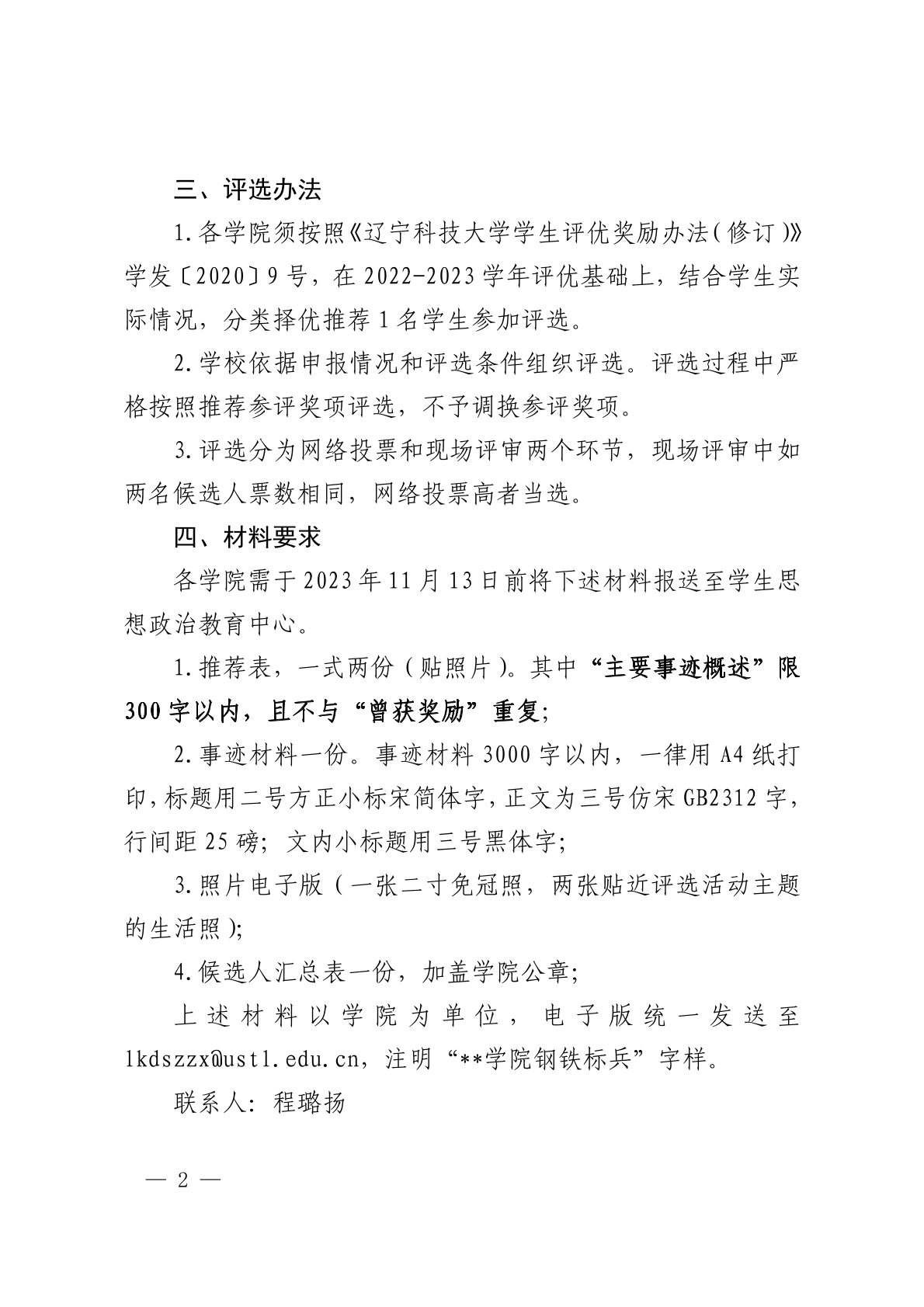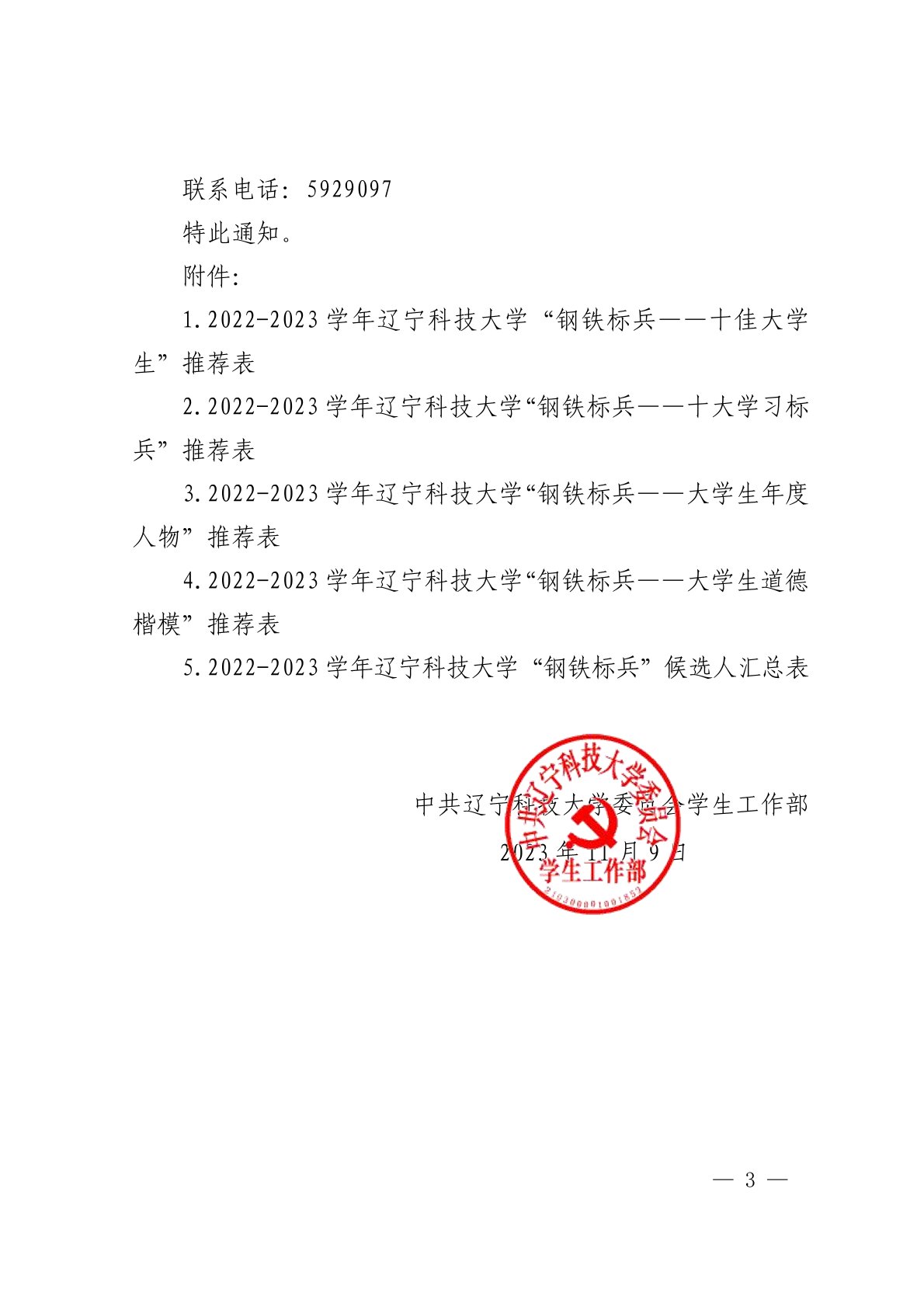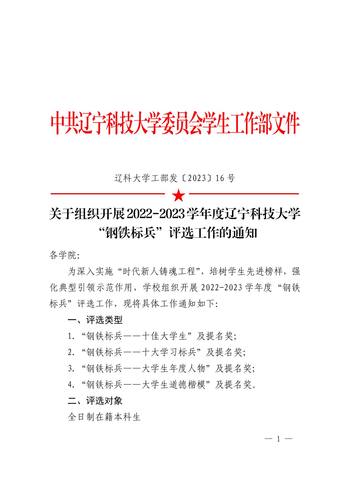 关于组织开展2022-2023学年度荣耀体育app最新版下载“钢铁标兵”评选工作的通知