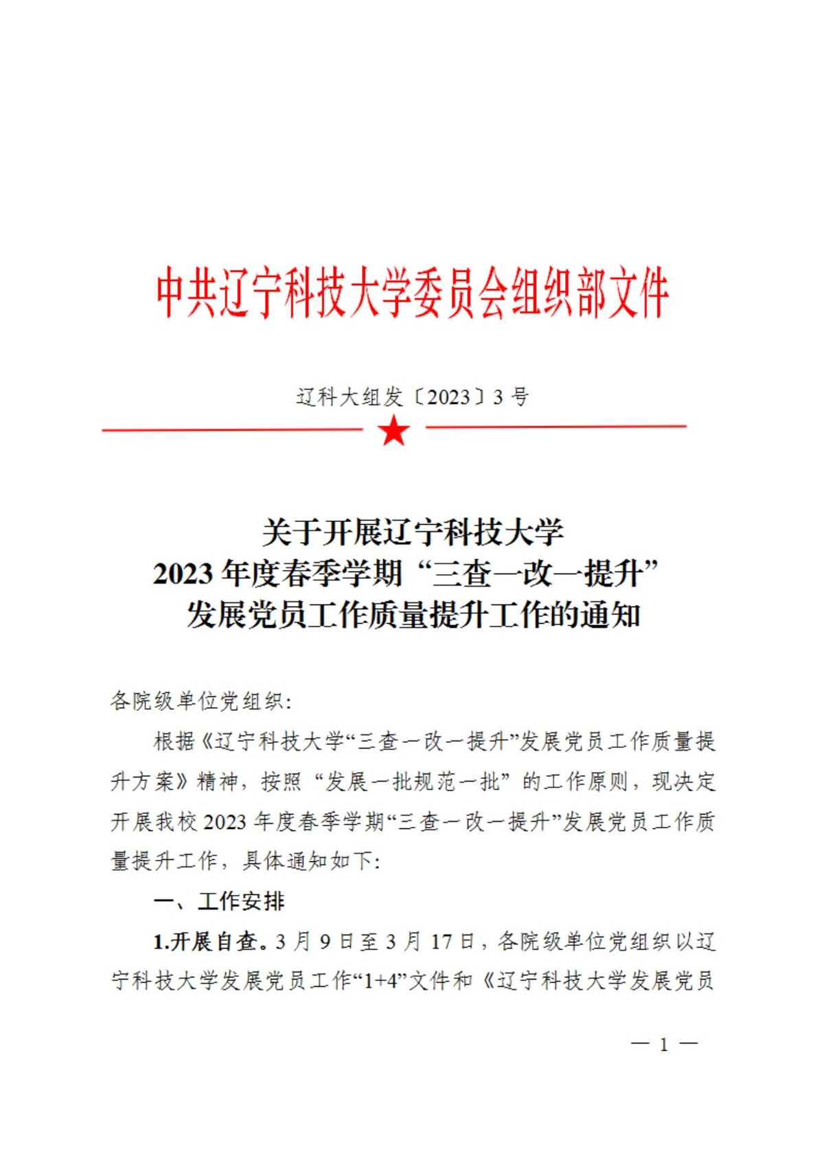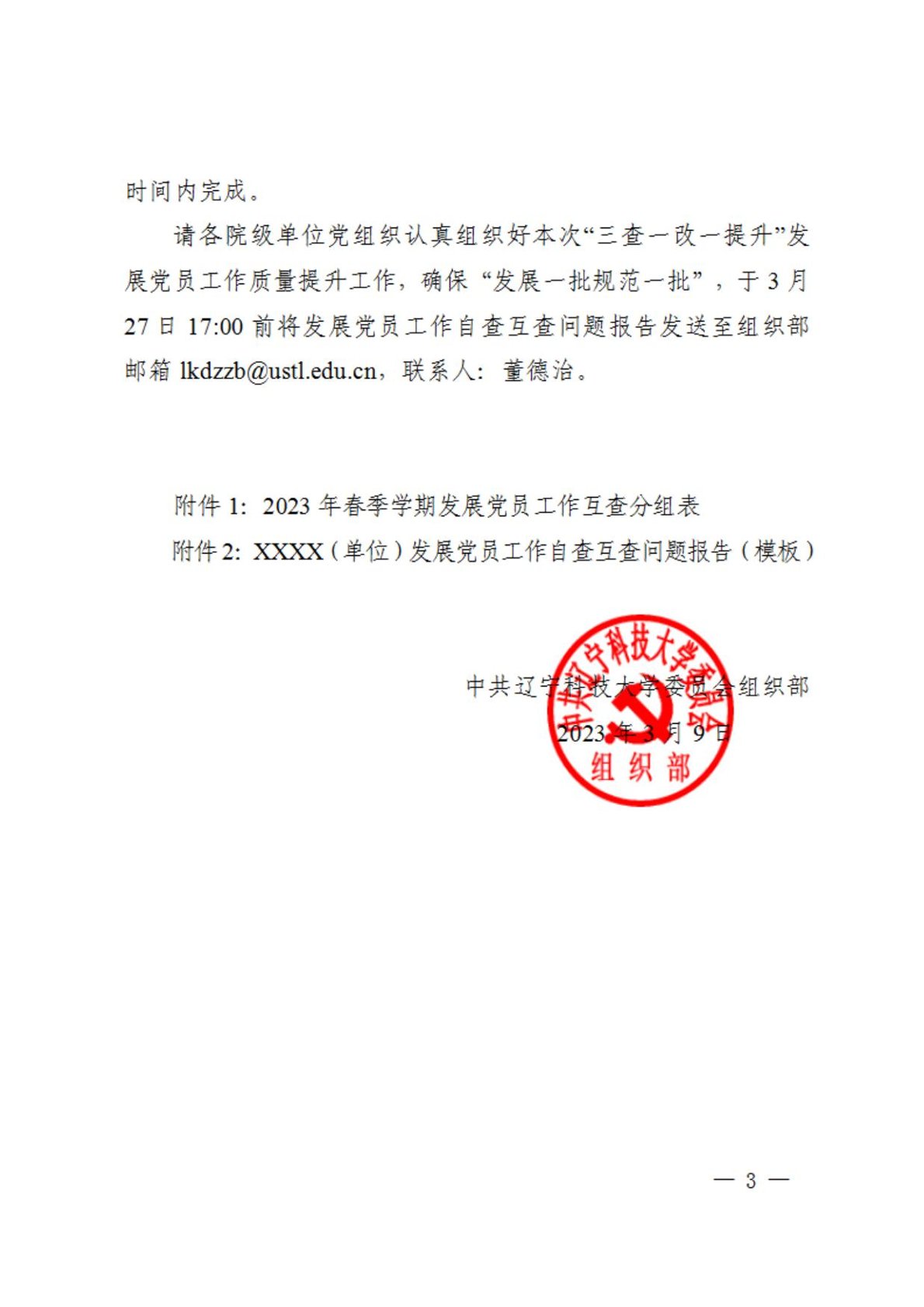 关于开展荣耀体育app最新版下载2023年度春季学期“三查一改一提升”发展党员工作质量提升工作的通知