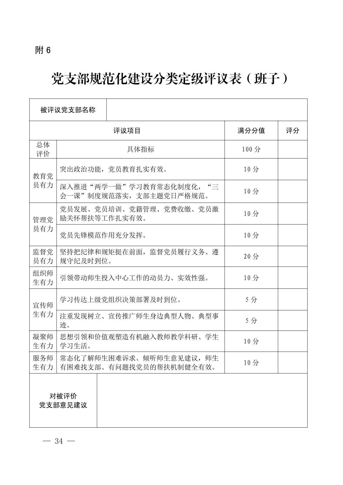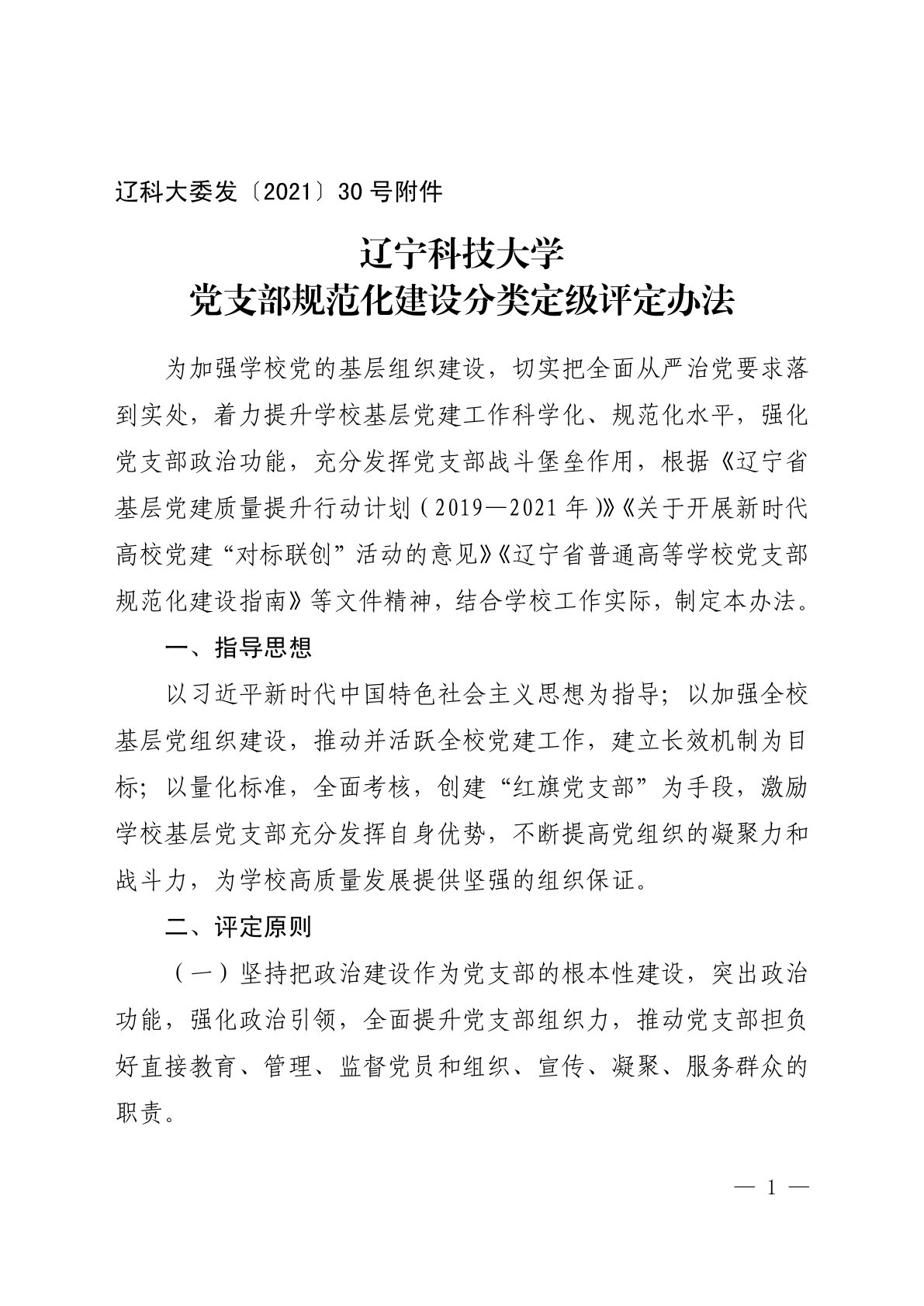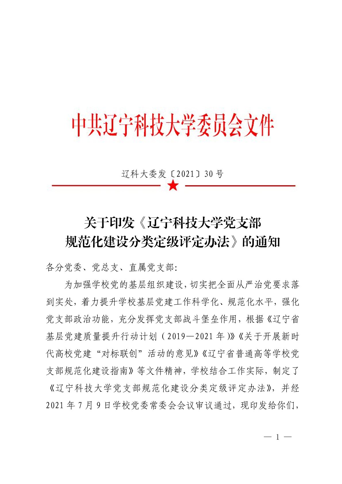 关于印发《荣耀体育app最新版下载党支部规范化建设分类定级评定办法》的通知