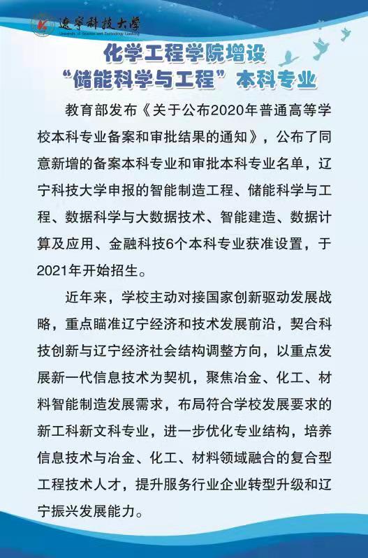 化学工程学院增设“储能科学与工程”本科专业