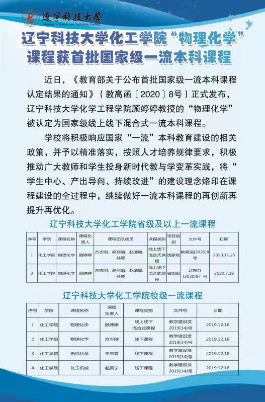 荣耀体育app最新版下载化工学院“物理化学”课程获首批国家级一流本科课程