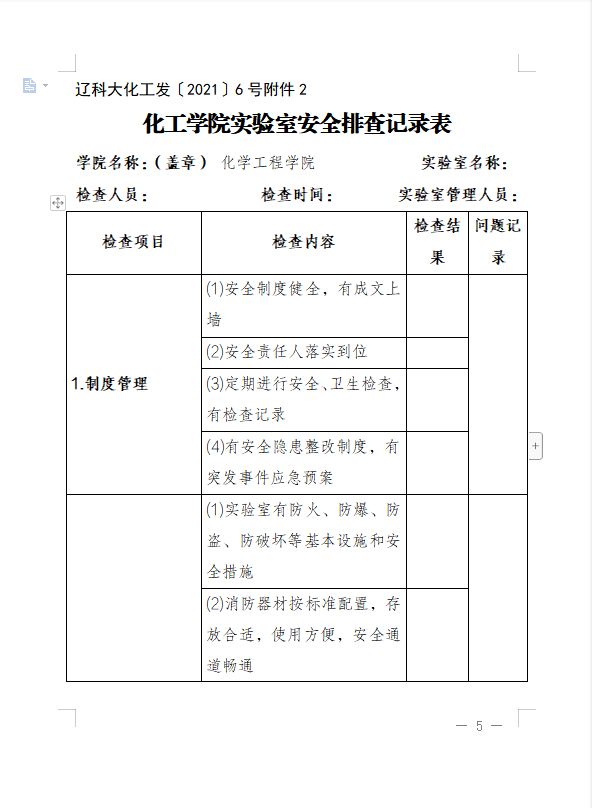 关于印发化学工程学院《实验室安全管理工作奖惩制度》的通知