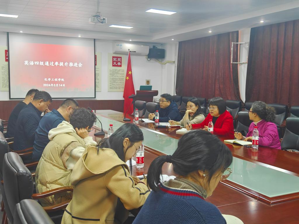 3月14日,化工学院在博观楼B325召开大学英语四级通过率提升工作推进会。化工学院、外国语学院部分教师及相关辅导员参加座谈。