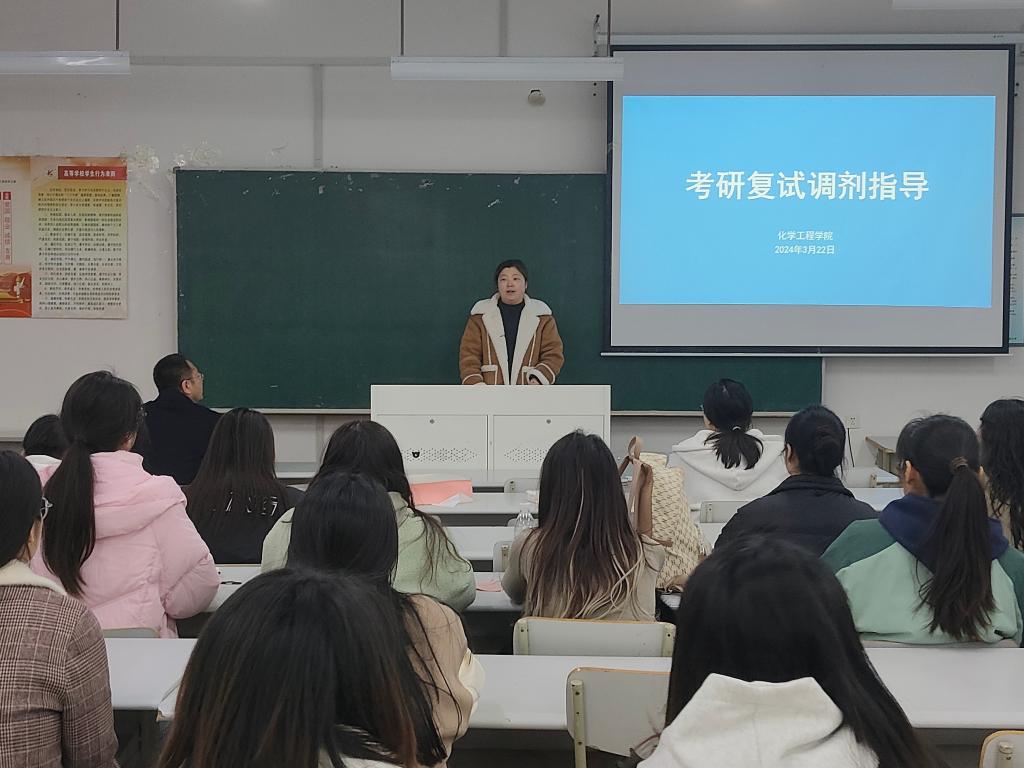3月22日,荣耀体育(中国)化工学院在博学楼B108召开考研复试调剂指导会。学院相关指导教师、辅导员代表及80余名同学参会。