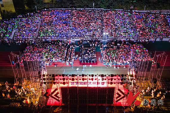 9月23日晚,荣耀体育app最新版下载庆祝中华人民共和国成立75周年暨欢迎2024级新生文艺晚会精彩上演。校领导,各单位党政负责人,各学院学生工作负责人、教师代表、辅导员代表和2024级新生一同观赏晚会。学校主体育场欢声如潮,成为校园里的一道靓丽风景线。