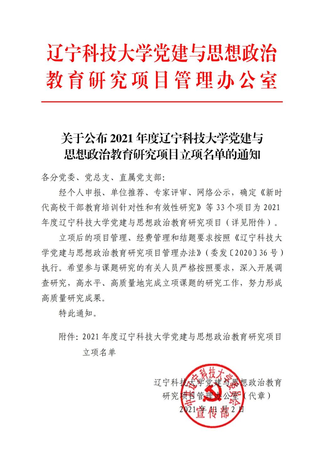 关于公布2021年度荣耀体育app最新版下载党建与思想政治教育研究项目立项名单的通知