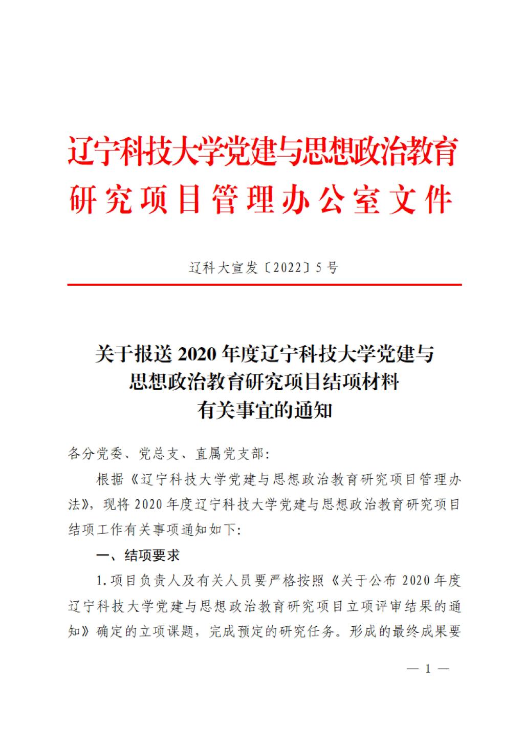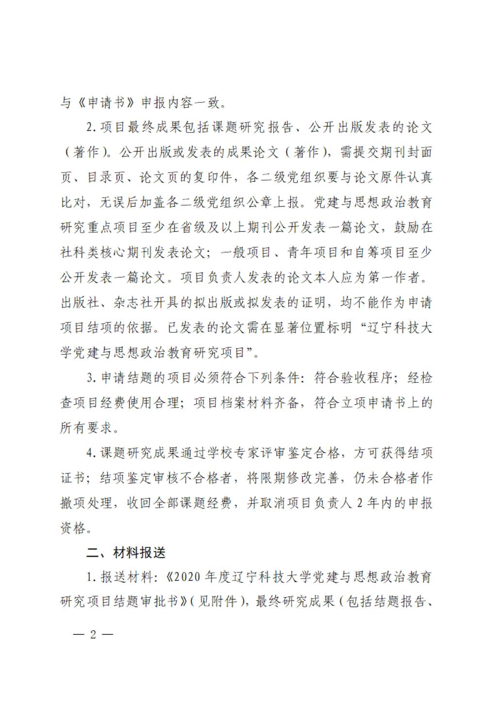 关于报送 2020年度荣耀体育app最新版下载党建与思想政治教育研究项目结项材料有关事宜的通知.pdf