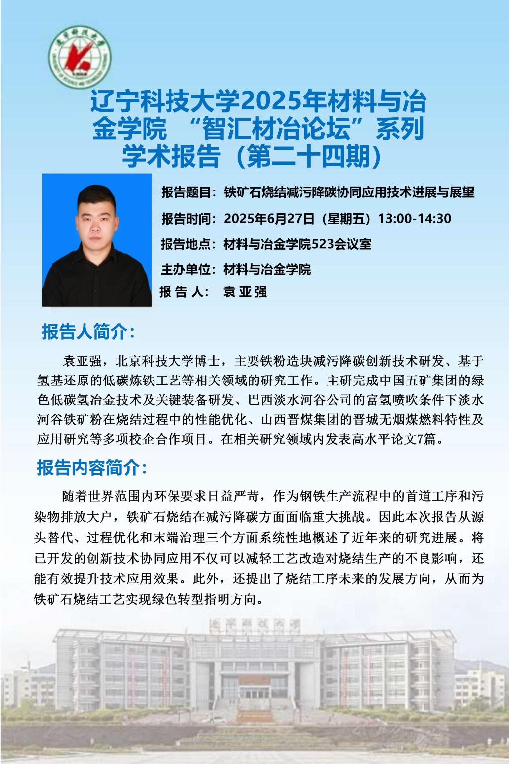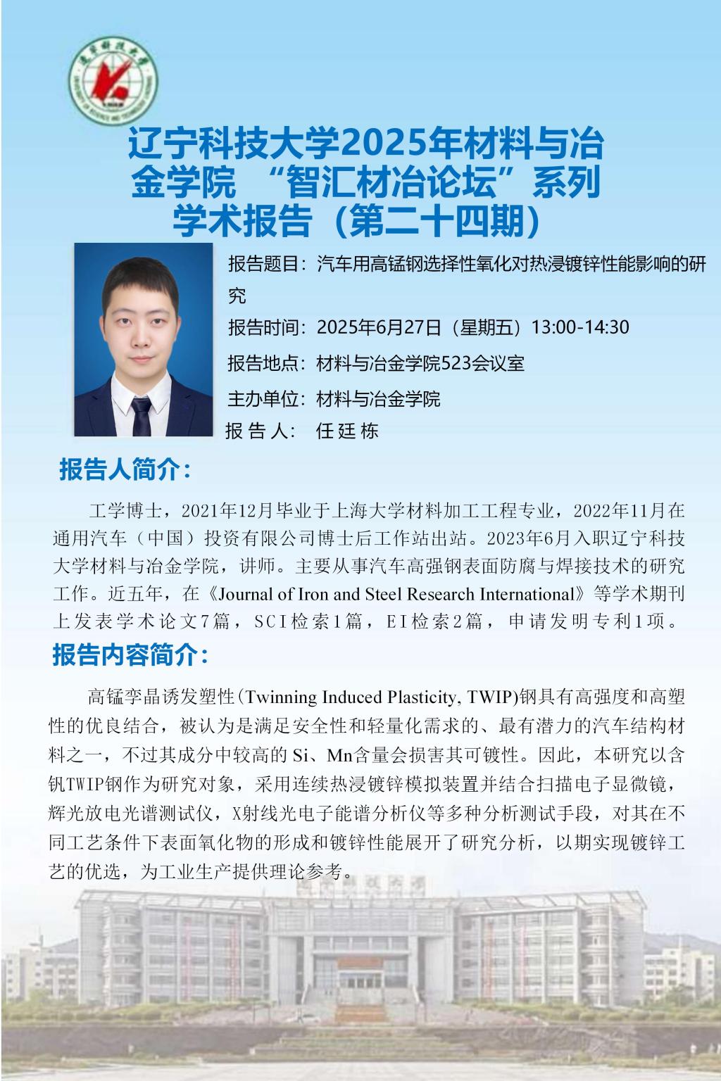 荣耀体育app最新版下载2025年材料与冶金学院 “智汇材冶论坛”系列学术报告 (第二十四期)