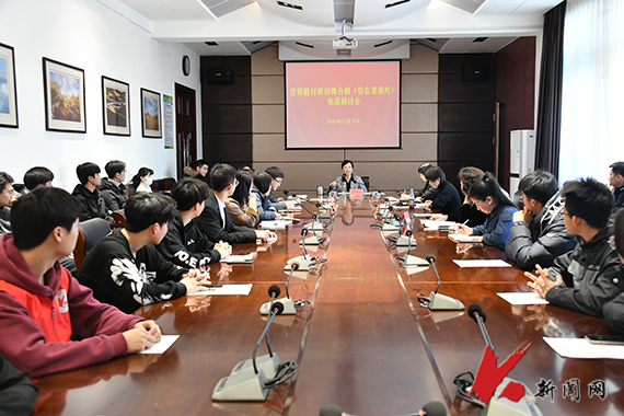 12月18日,荣耀体育app最新版下载大型雷锋题材原创舞台剧《恰在青春时》座谈研讨会在校部421会议室召开。校党委副书记孙晓华出席会议并讲话,相关部门负责人、师生代表参加座谈。