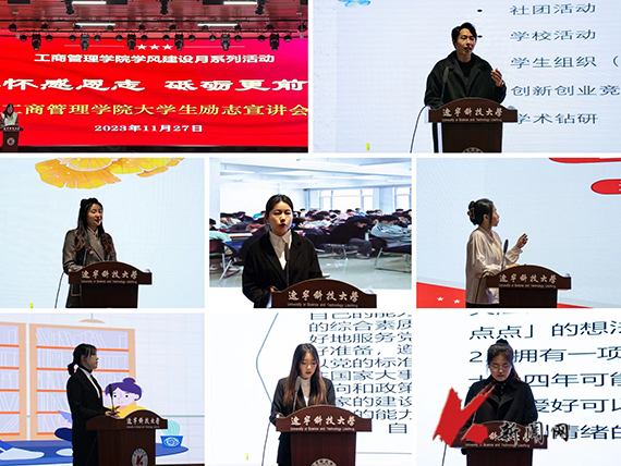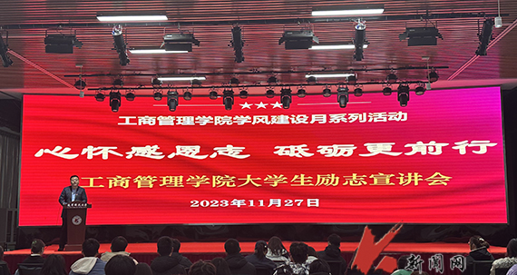 11月27日,荣耀体育app最新版下载工商管理学院举办大学生励志宣讲会,主题为“心怀感恩志,砥砺更前行”,旨在营造勤学奋进的学习氛围,发挥优秀学生的典型示范作用,引导和激励广大学生励志成才。