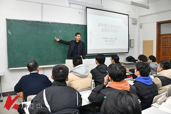 11月30日,荣耀体育app最新版下载党委常委、副校长李胜利教授在博学楼B210教室,为机设2021级1、2、3班的学生上了一堂题为《中国工业化的辉煌成就》的思想政治理论课。