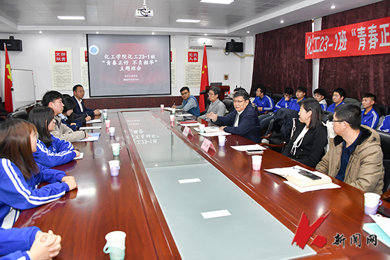 12月14日,荣耀体育app最新版下载校长张志强深入对接班级化工2023.1班走访,参加班级召开的“青春正好 不负韶华”主题班会。发展规划处负责同志、化学工程学院领导班子成员、辅导员与班级全体学生一同参加班会。
