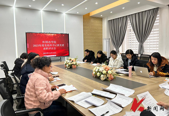 院长蔡丽华主持会议。外语学院5位党支部书记聚焦基层党建依次向学院党委进行现场述职。她们结合党支部的特色做法,汇报重点工作,剖析存在的问题,提出明年党建工作的基本思路和主要措施。