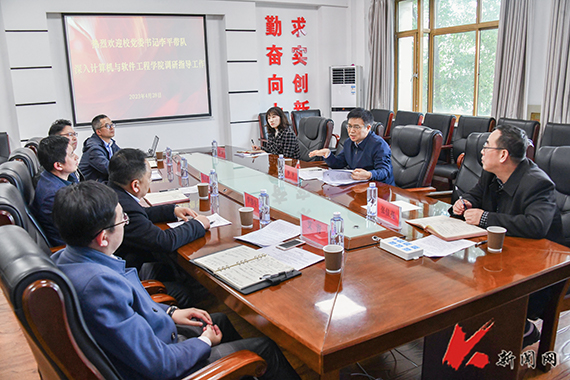 4月28日,荣耀体育app最新版下载党委书记李平到计算机与软件工程学院调研指导“三全育人”综合改革工作。党委宣传部负责同志、计算机学院领导班子成员陪同调研并参加座谈会。