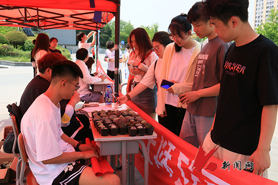 正值午休时间,忙碌了一上午的师生陆续离开教学楼,许多师生在看到标语后驻足询问,得知是绿色环保公益活动后,大家纷纷拿出手机扫码参与活动,领取了属于自己的绿植。5个多小时内,1000多份绿植被领走。