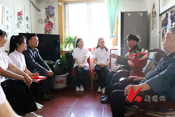 5月15日,荣耀体育app最新版下载“钢花”新时代大学生理论宣讲团一行8人来到鞍山市铁东区老兵广场,拜访功勋老兵徐殿义,聆听老英雄讲述解放战争时期的革命故事。