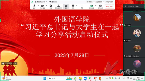 7月28日,荣耀体育app最新版下载外国语学院通过线上举行“习近平总书记与大学生在一起”学习分享活动启动仪式,学院全体学生参加仪式。