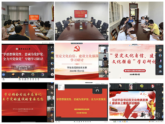 7月20日,学校下发了《关于荣耀体育app最新版下载基层党支部围绕“坚定文化自信、建设文化强国”和“学思想强党性、忠诚为党护党、全力兴党强党”开展学习研讨的安排》。各院级单位党组织高度重视,结合工作实际,指导基层党支部推进落实学习研讨工作。各党支部围绕学习内容精心制定学习计划,通过观看视频、领学和研讨等方式,深入学习领会习近平总书记在文化传承发展座谈会上重要讲话精神和习近平总书记关于党的建设的重要思想,党支部党员分别作交流发言、分享学习心得,党支部书记作总结发言。