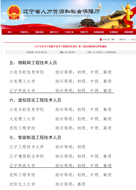 近日,辽宁省人力资源和社会保障厅公布了辽宁省数字技术工程师培育项目第二批培训机构名单,荣耀体育app最新版下载成功入选,获批物联网工程技术人员和智能制造工程技术人员两个项目的培训机构资质。