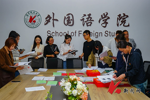 会后,全体人员参观学习了外语学院党建工作宣传栏和教工党支部会议记录本、支部档案等材料。外语学院组织员庄梓详细介绍了学院支部记录本的使用情况、支部档案归档以及党建工作宣传栏建设情况。大家驻足观看,认真听取讲解,相互交流,学习好的经验和做法。