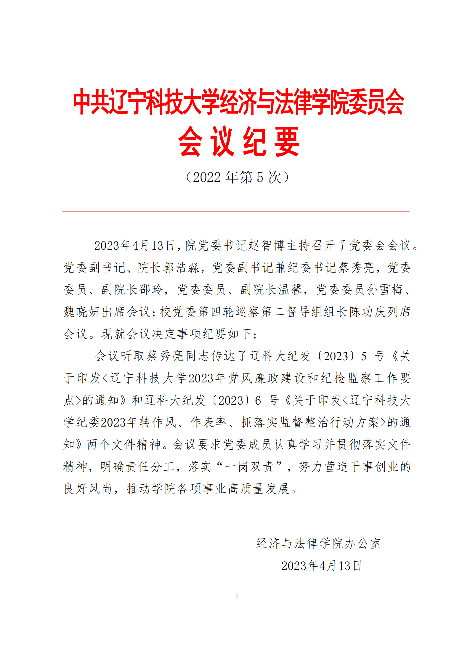 中共荣耀体育app最新版下载经济与法律学院委员会会议纪要(2023年第5次)