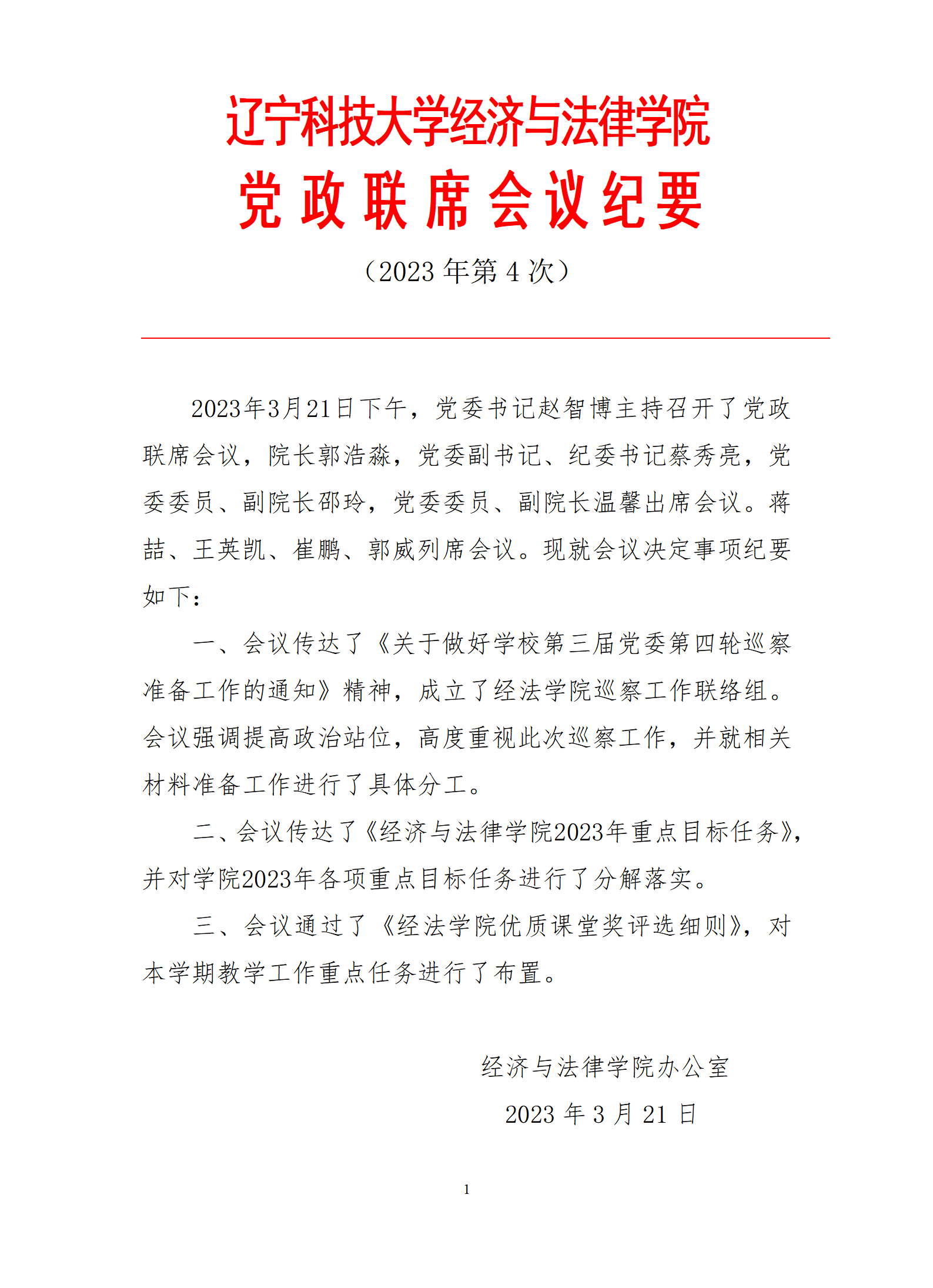经法学院党政联席会议纪要(2023年第4次)