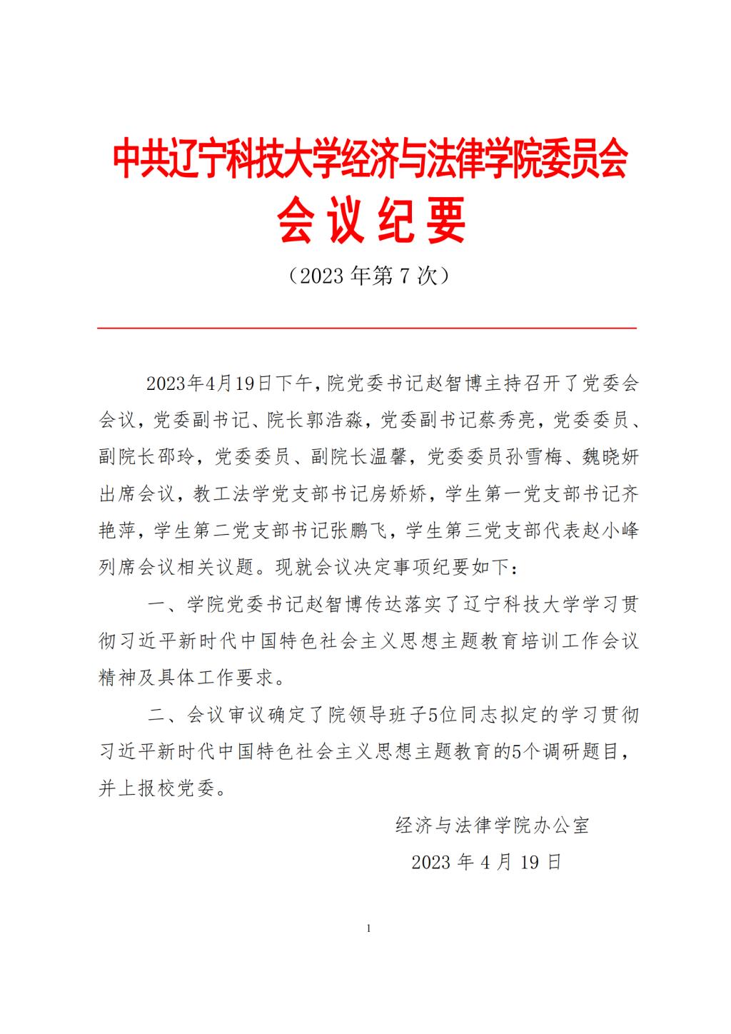 中共荣耀体育app最新版下载经济与法律学院委员会会议纪要(2023年第7次)