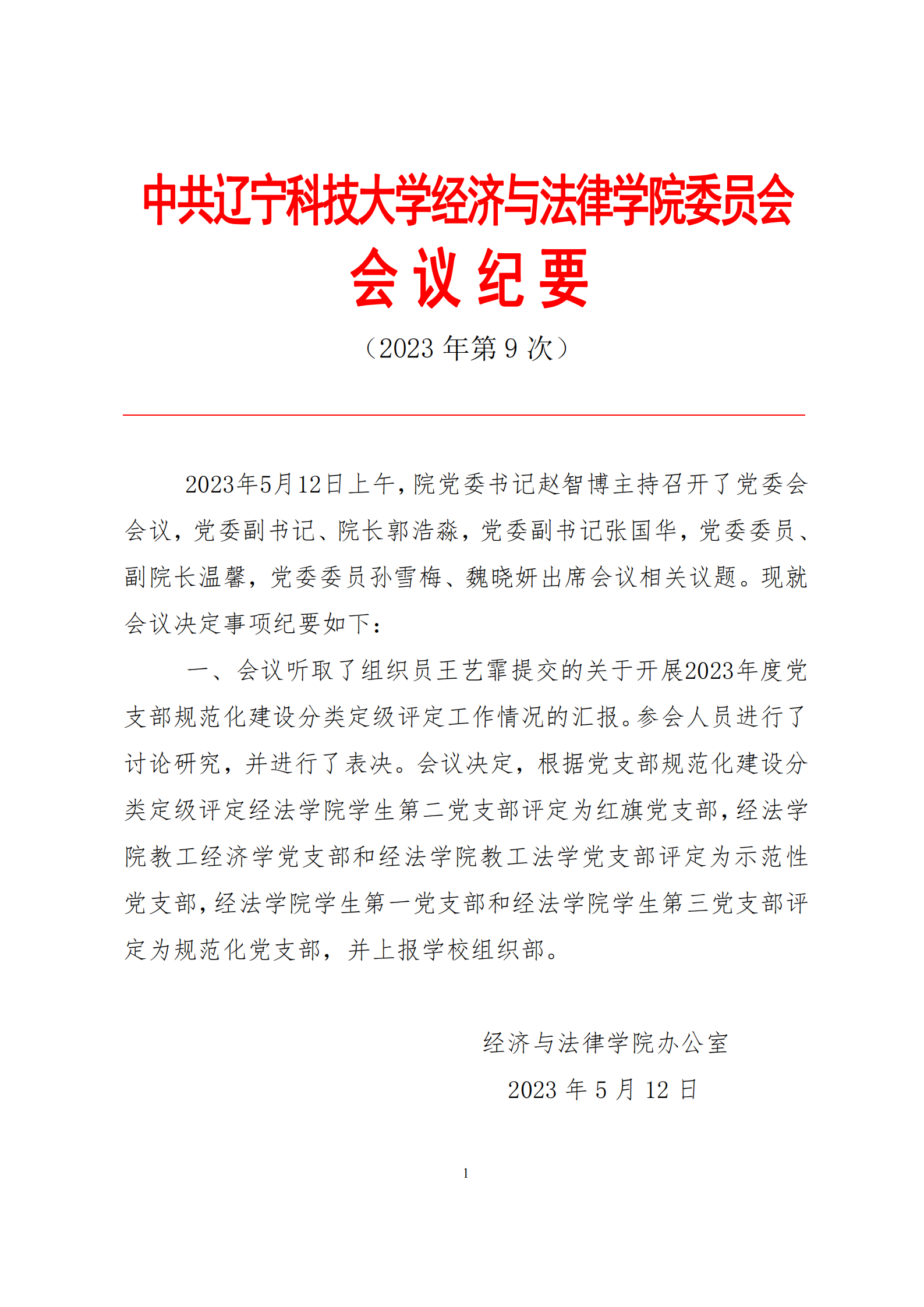 中共荣耀体育app最新版下载经济与法律学院委员会会议纪要(2023年第9次)